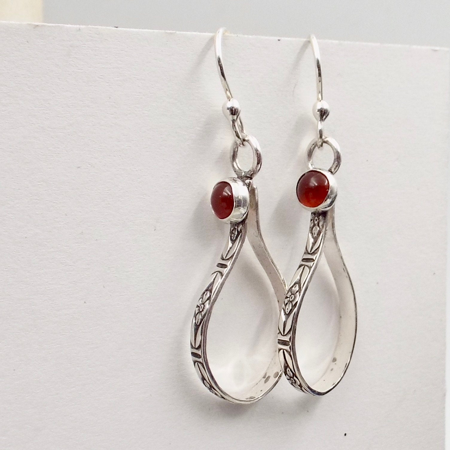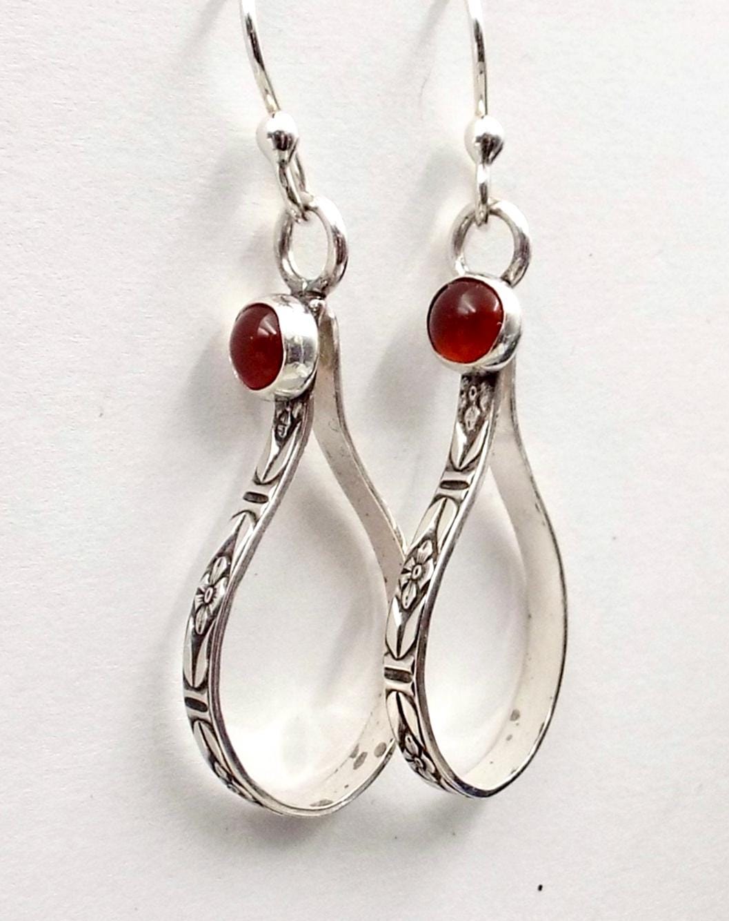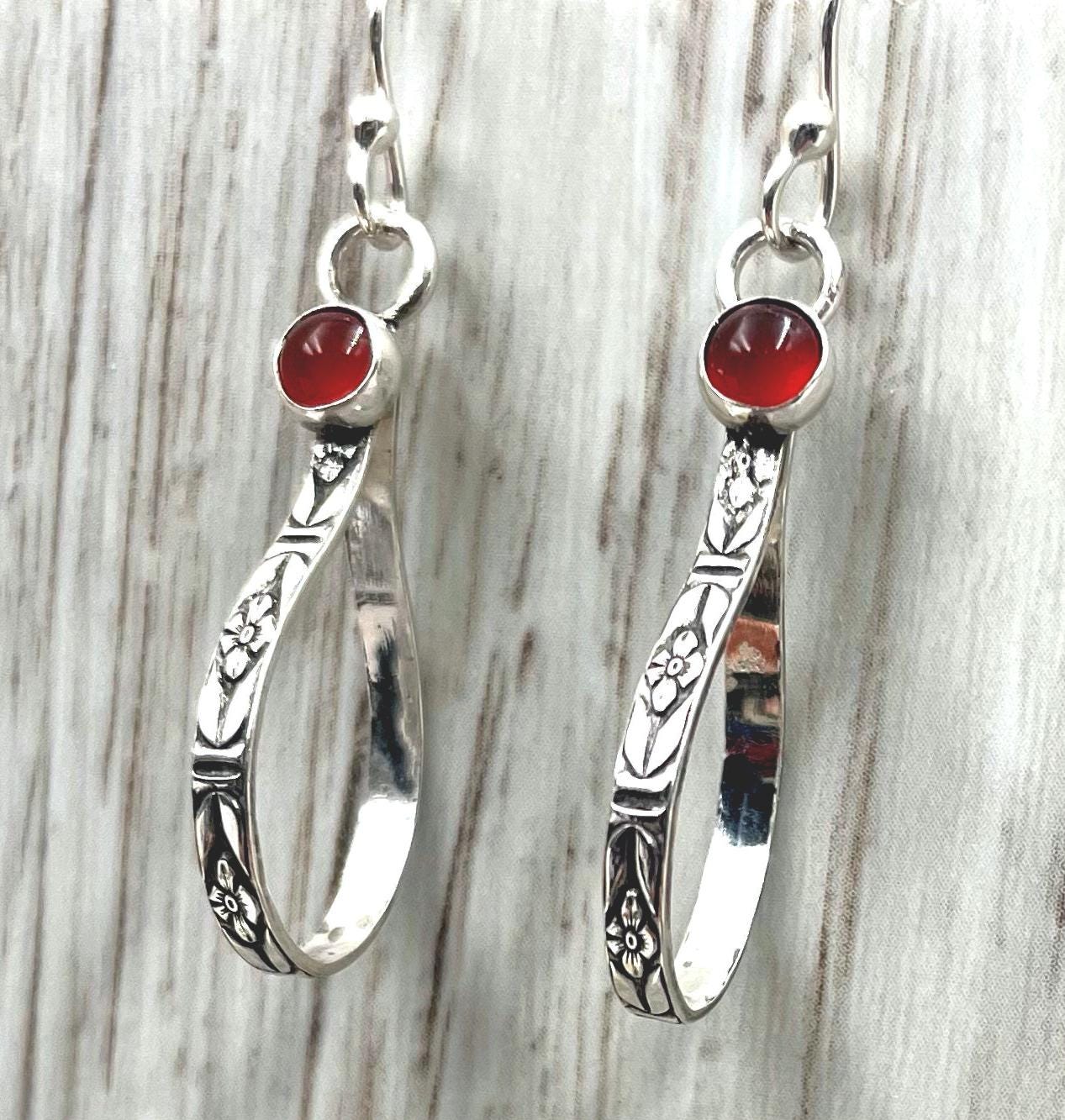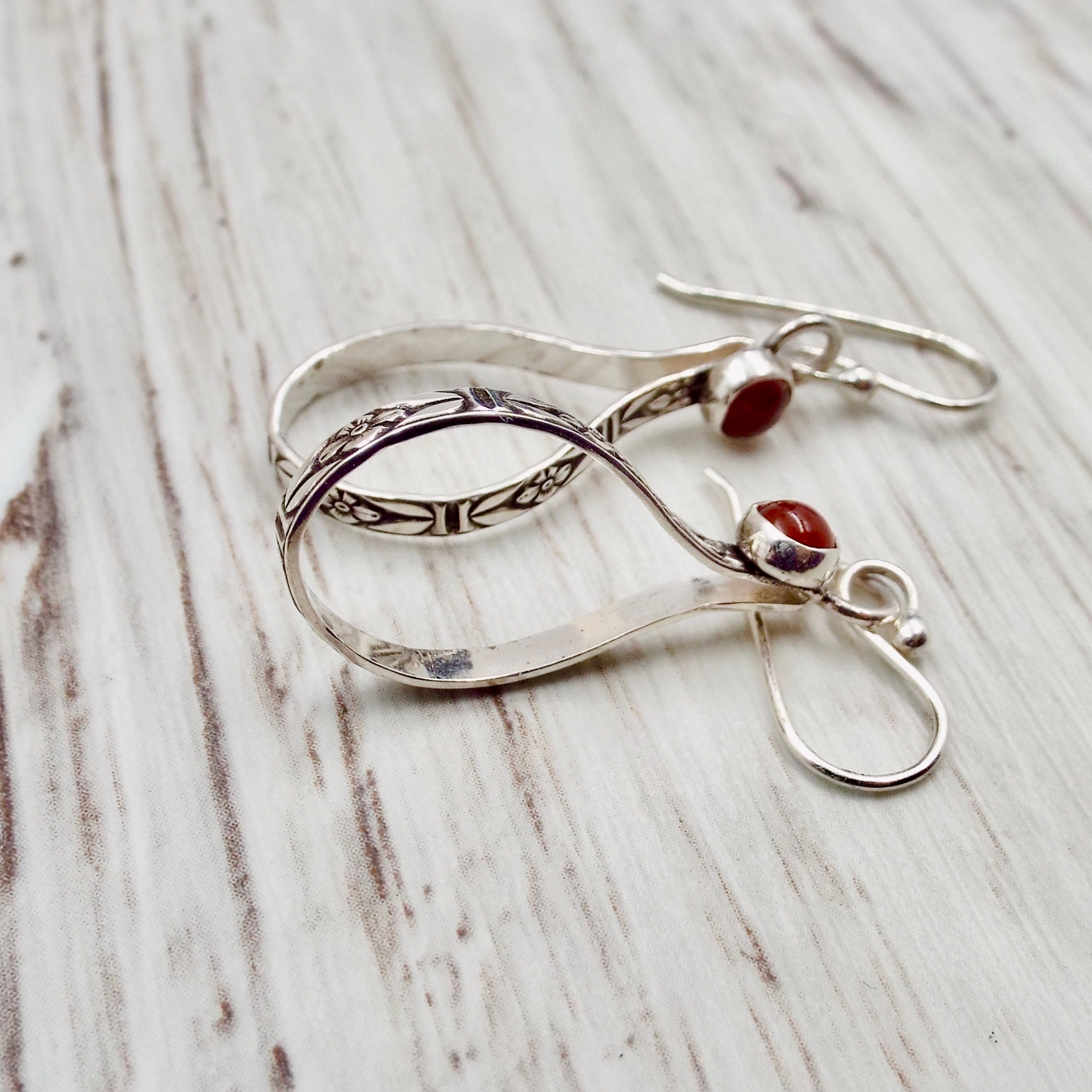 Carnelian gemstones adorn these Southwestern inspired patterned wire hoop earrings.