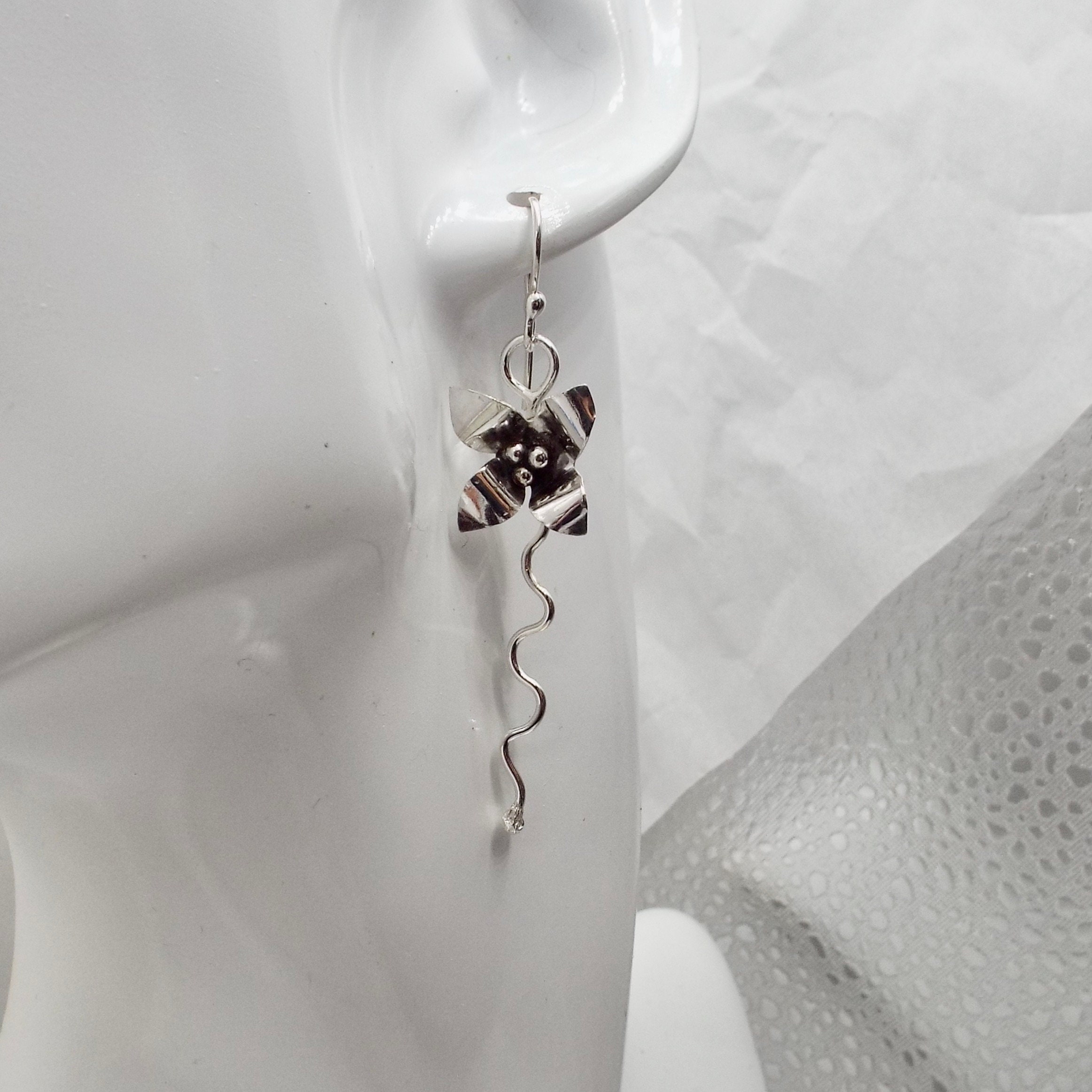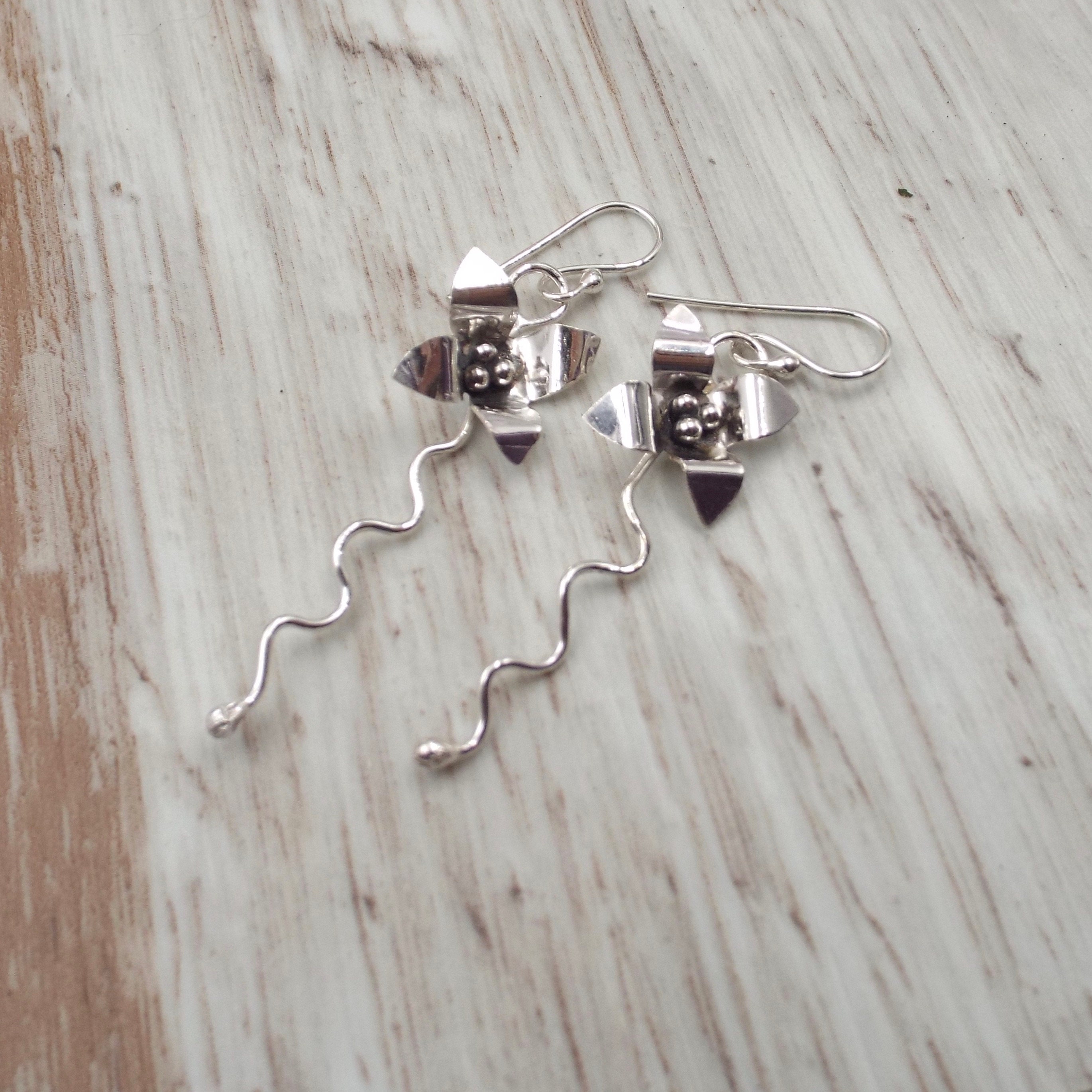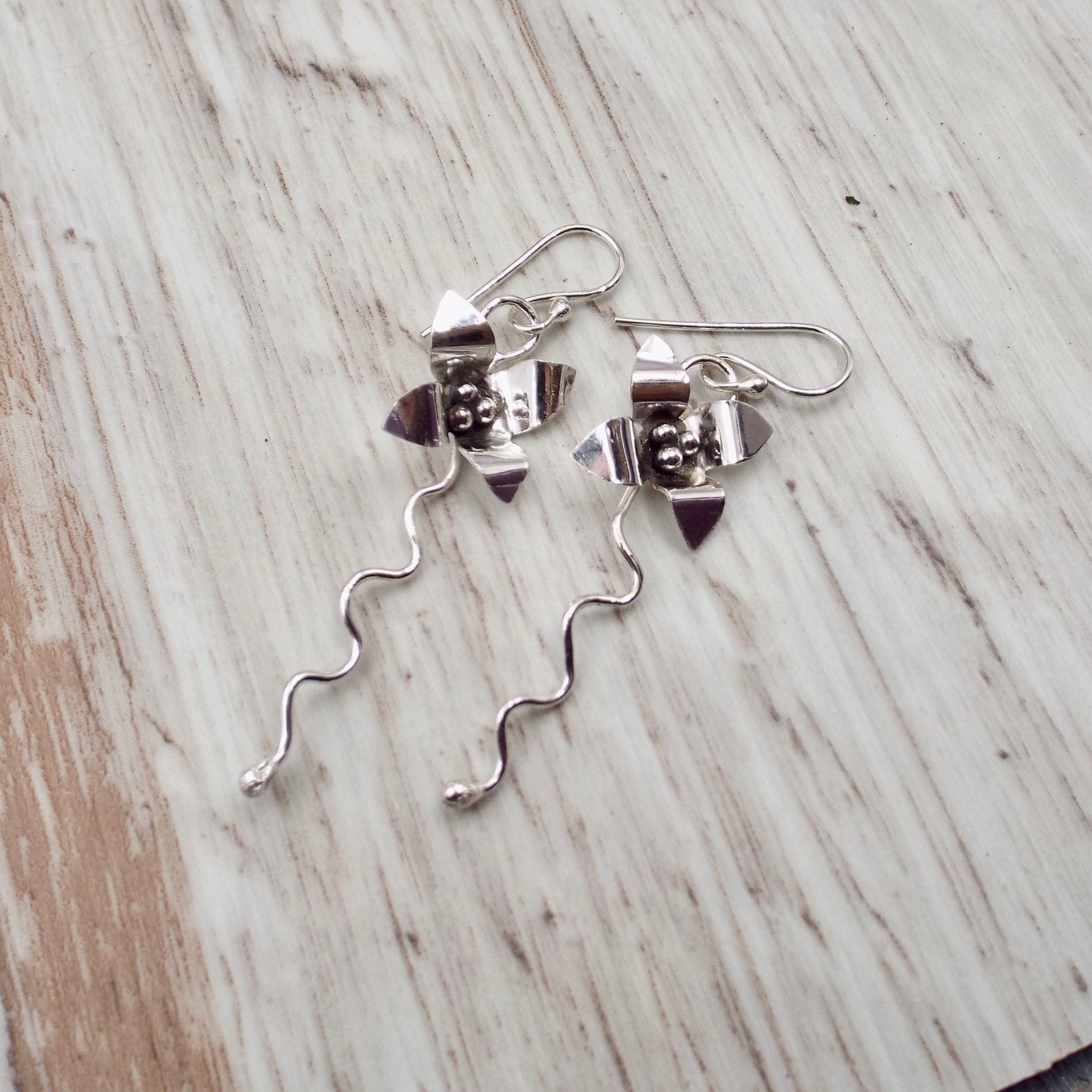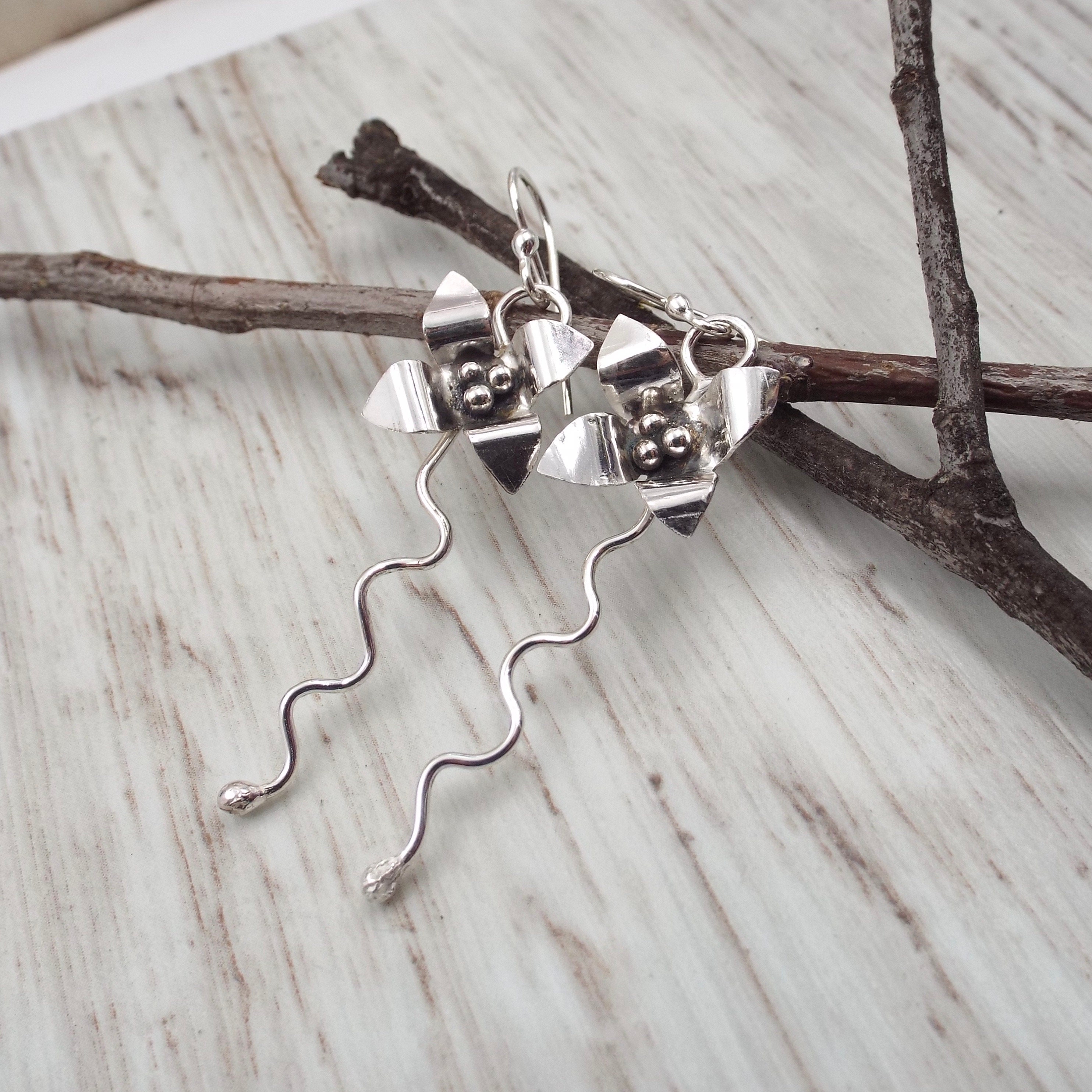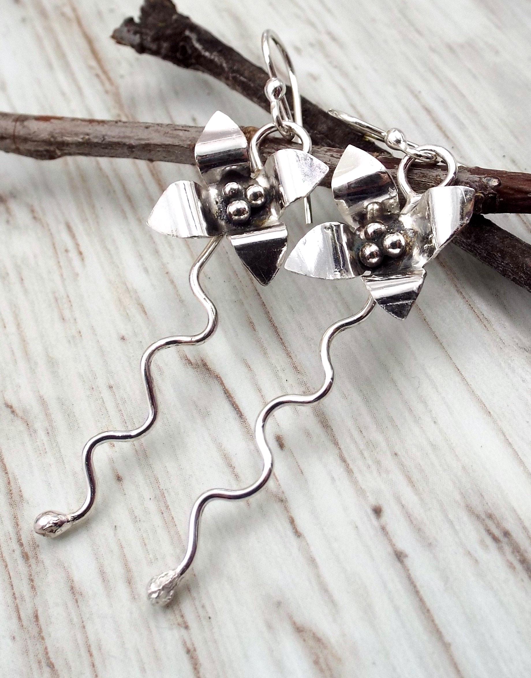 These earrings are entirely handmade from sterling silver.