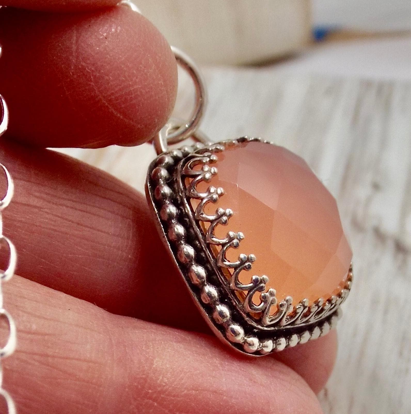This is a beautiful checkerboard cut calcedony stone. It is a delicate pink.