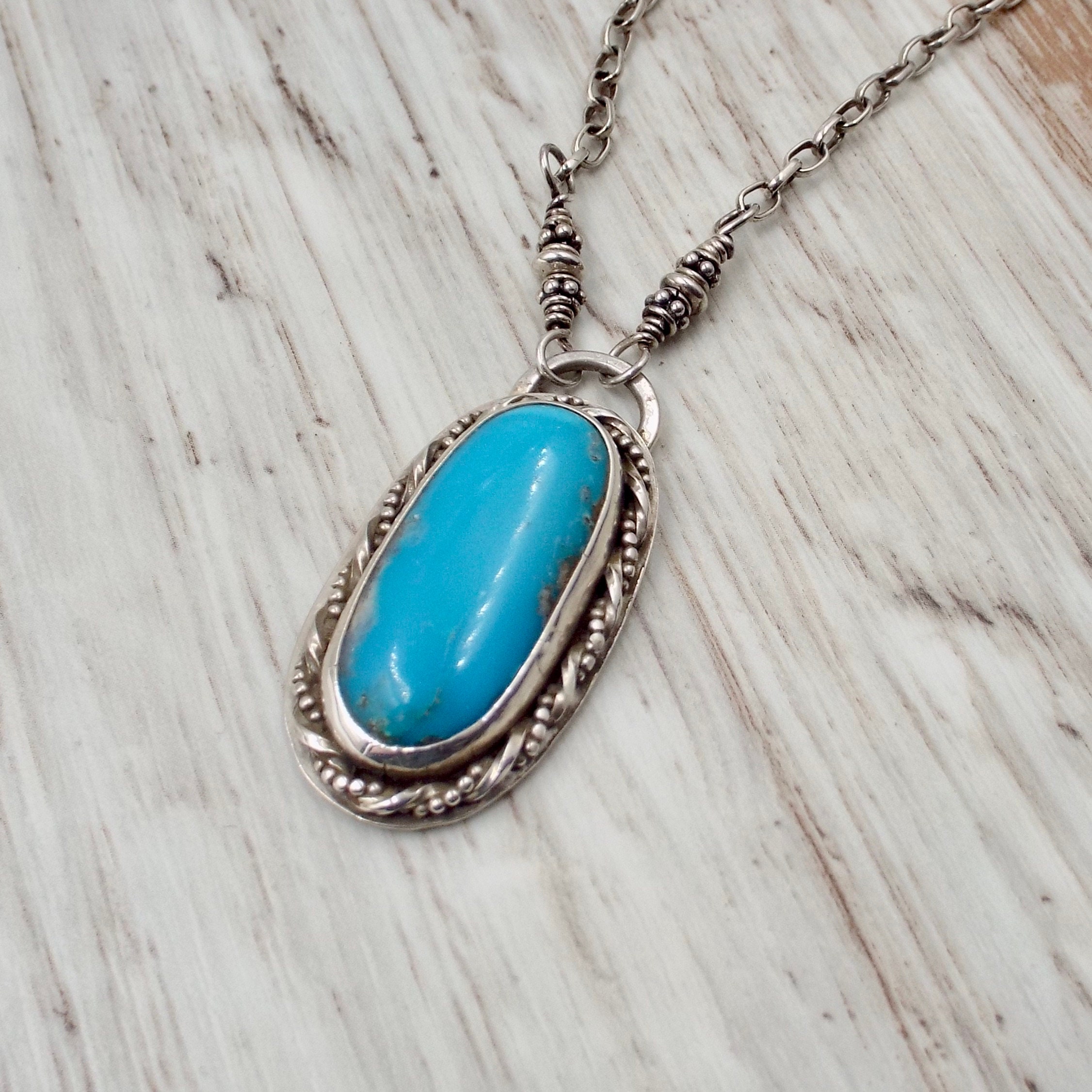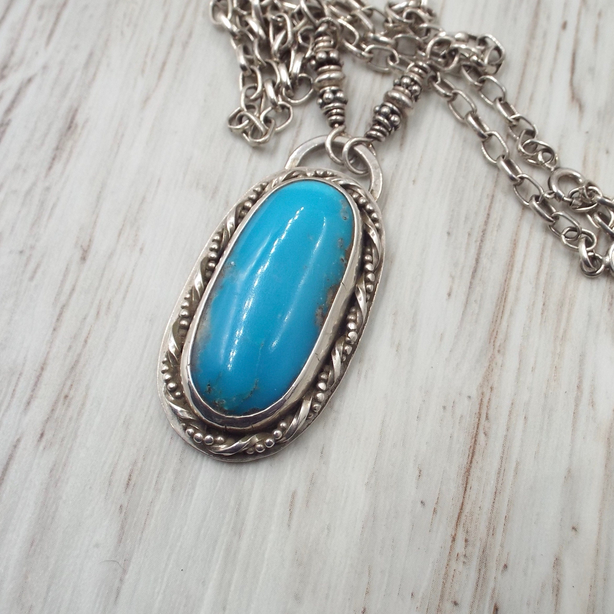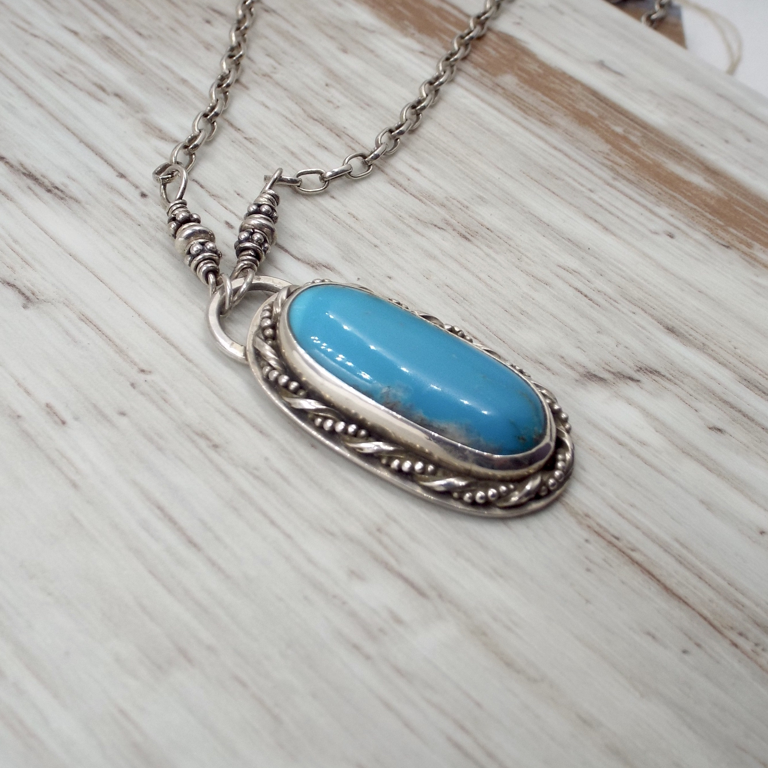 This is a tough one to give up. A beautiful Kingman turquoise from the Blue Basin mine and a handmade trim around the stone
