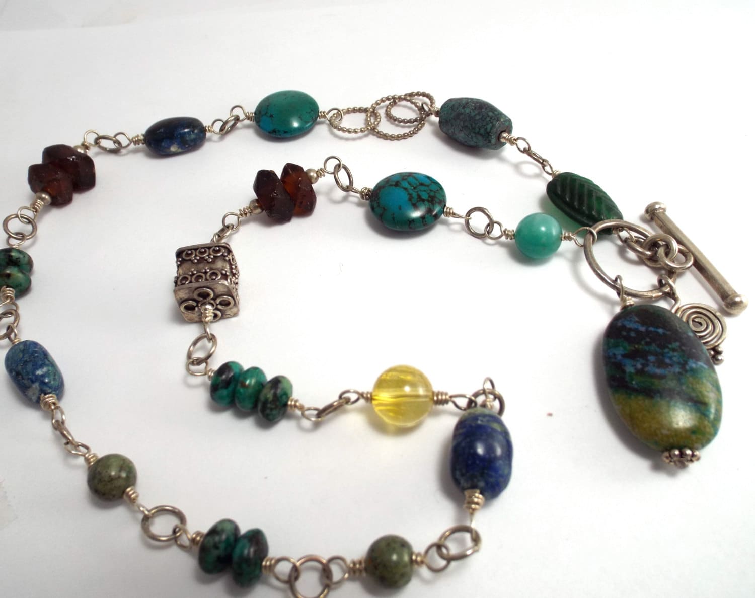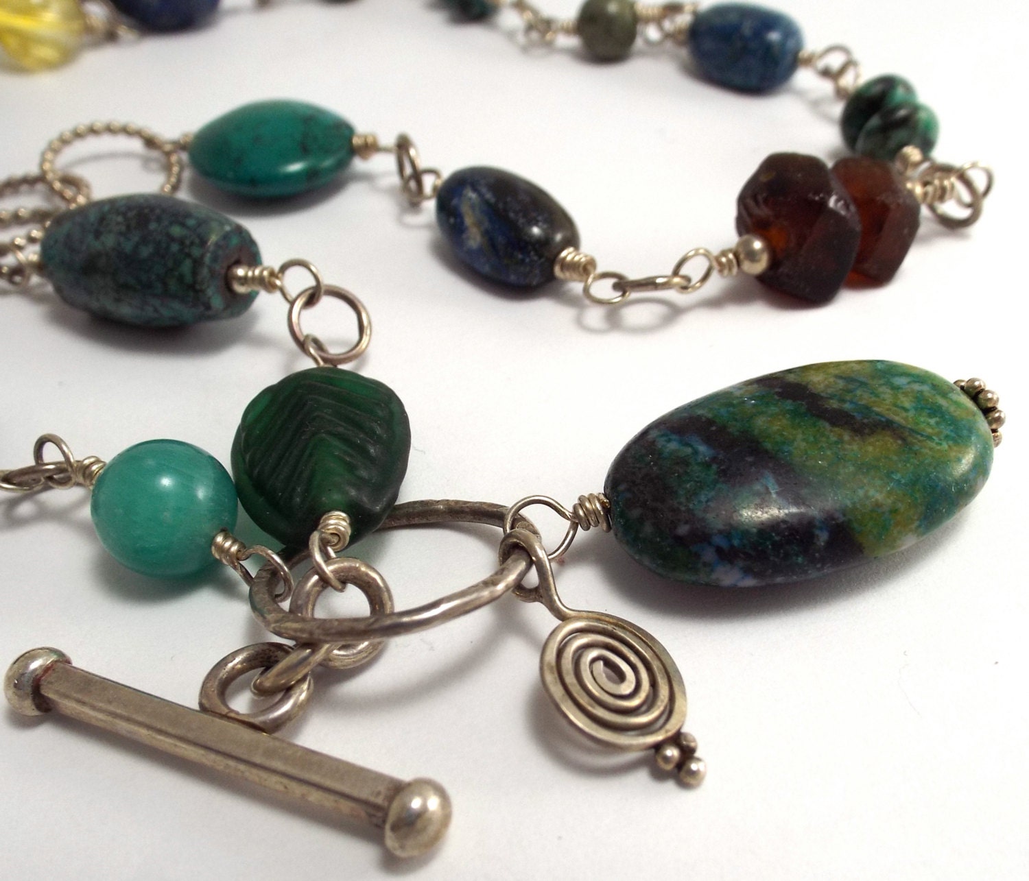 I made the toggle clasp, the sterling links and the silver spiral accent.