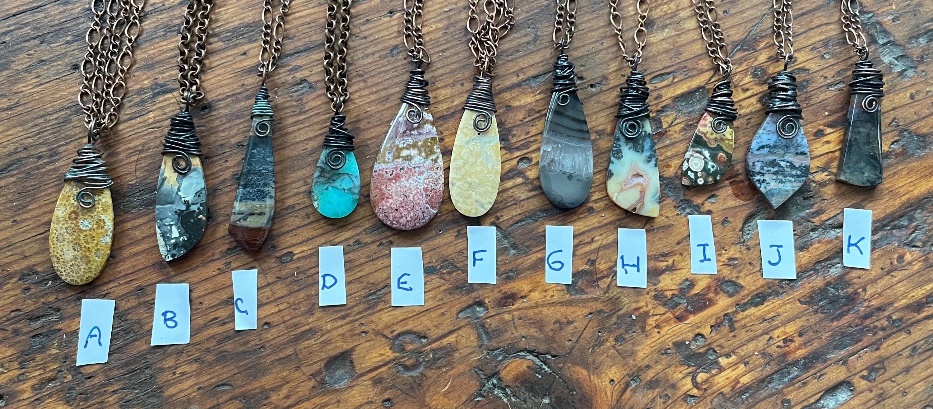 These pendant are more affordable than my sterling silver jewelry because they are made with copper wire and the stones are not bezel set.