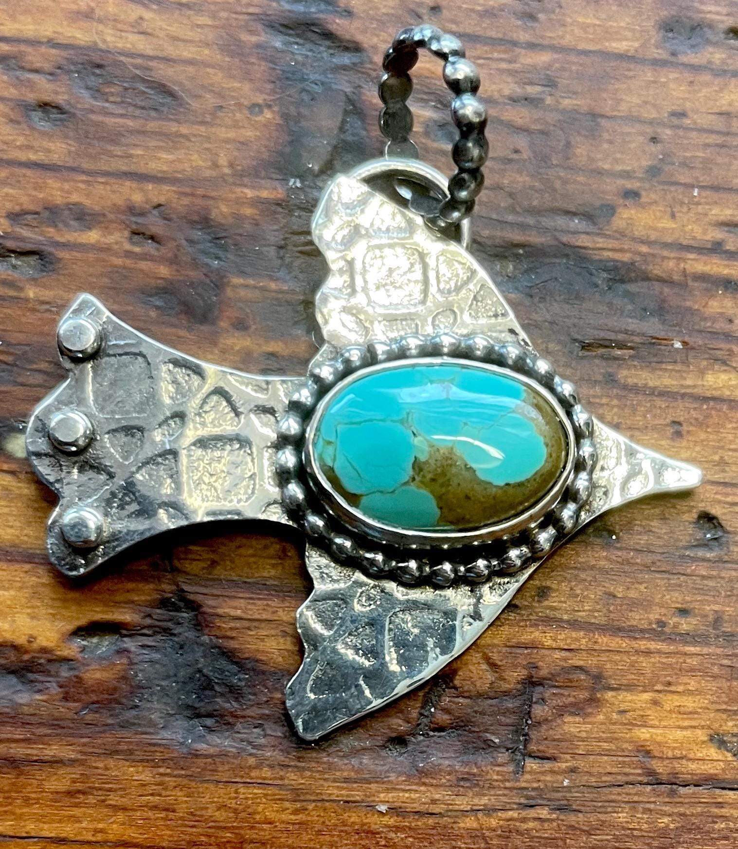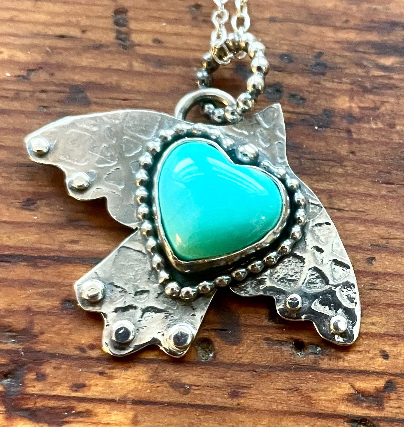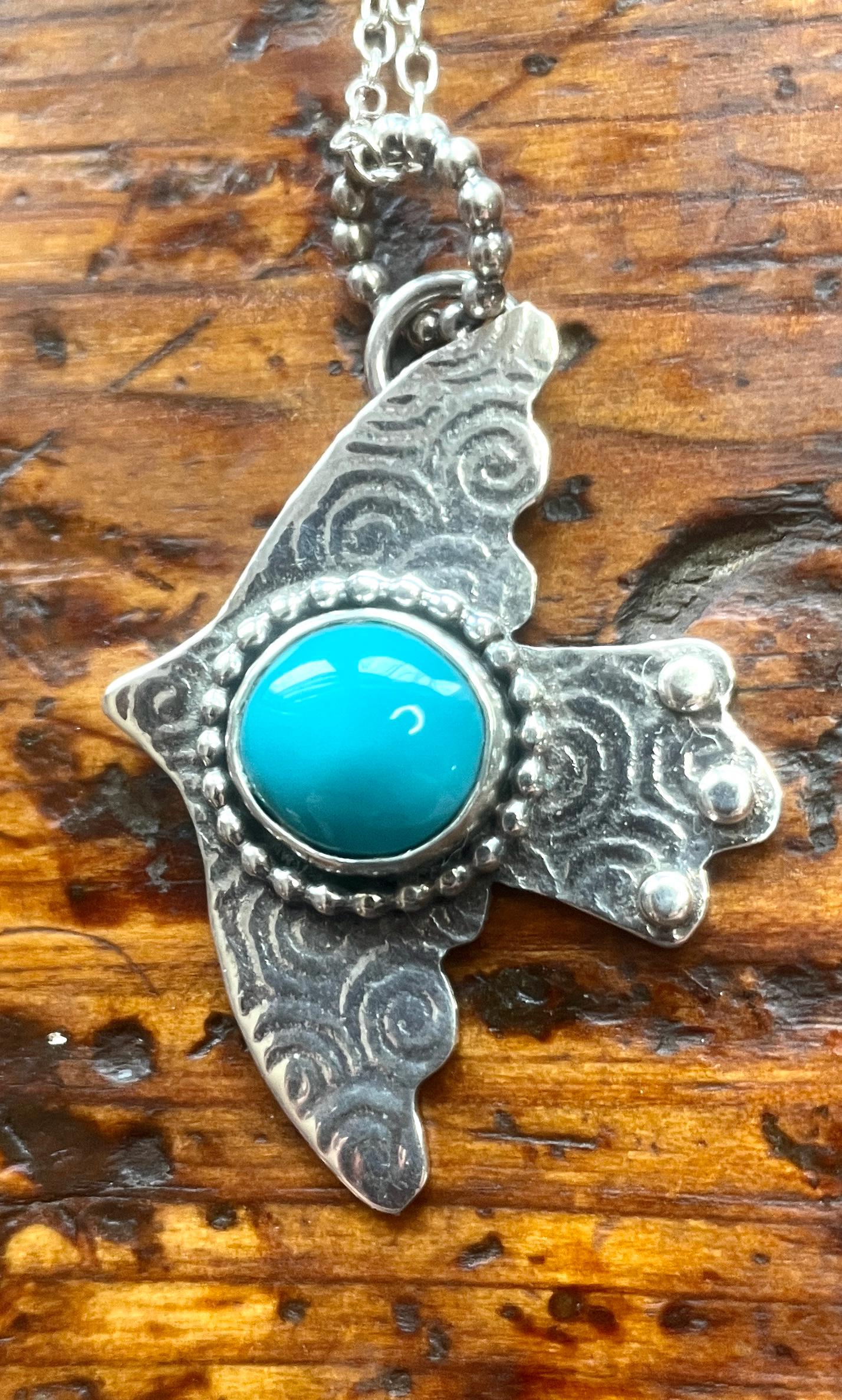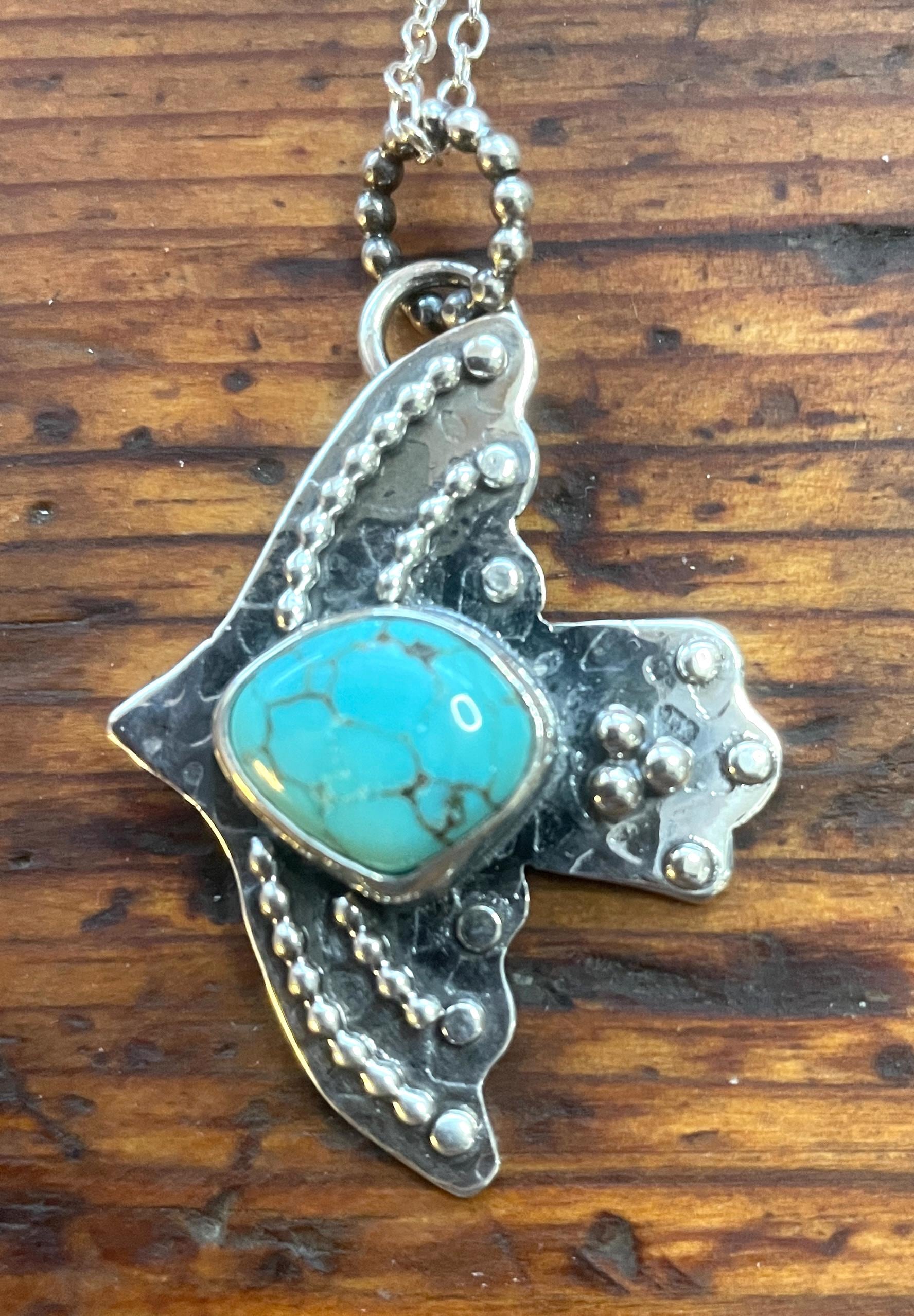 All these pendant are made from sterling silver and American mined turquoise. All are handmade by me and come with a delicate 18" chain.