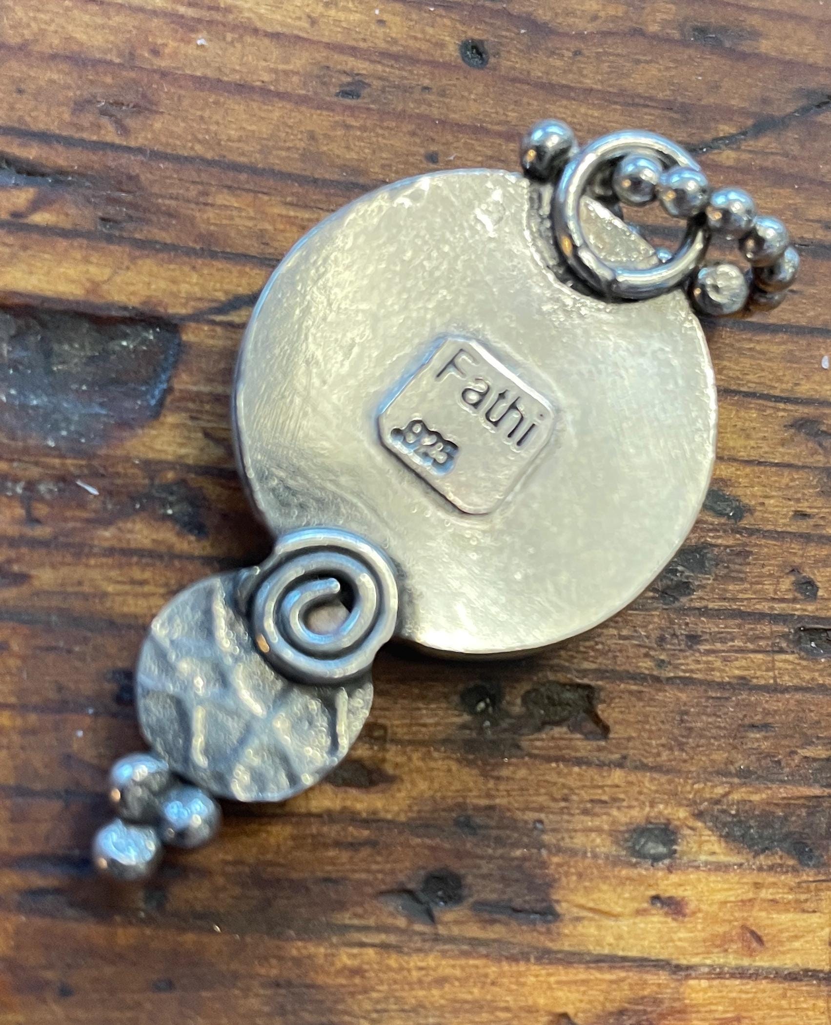 I made this pendant by hand in my studio. It measures 59mm ( almost 2"). An 18" sterling chain is also available to purchase.