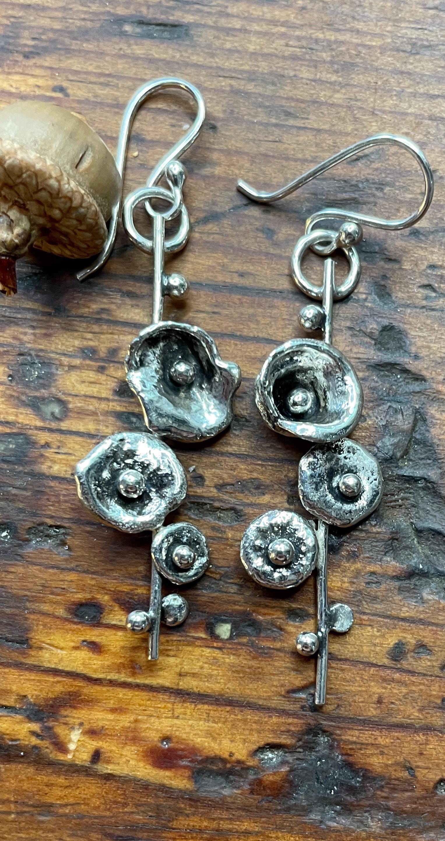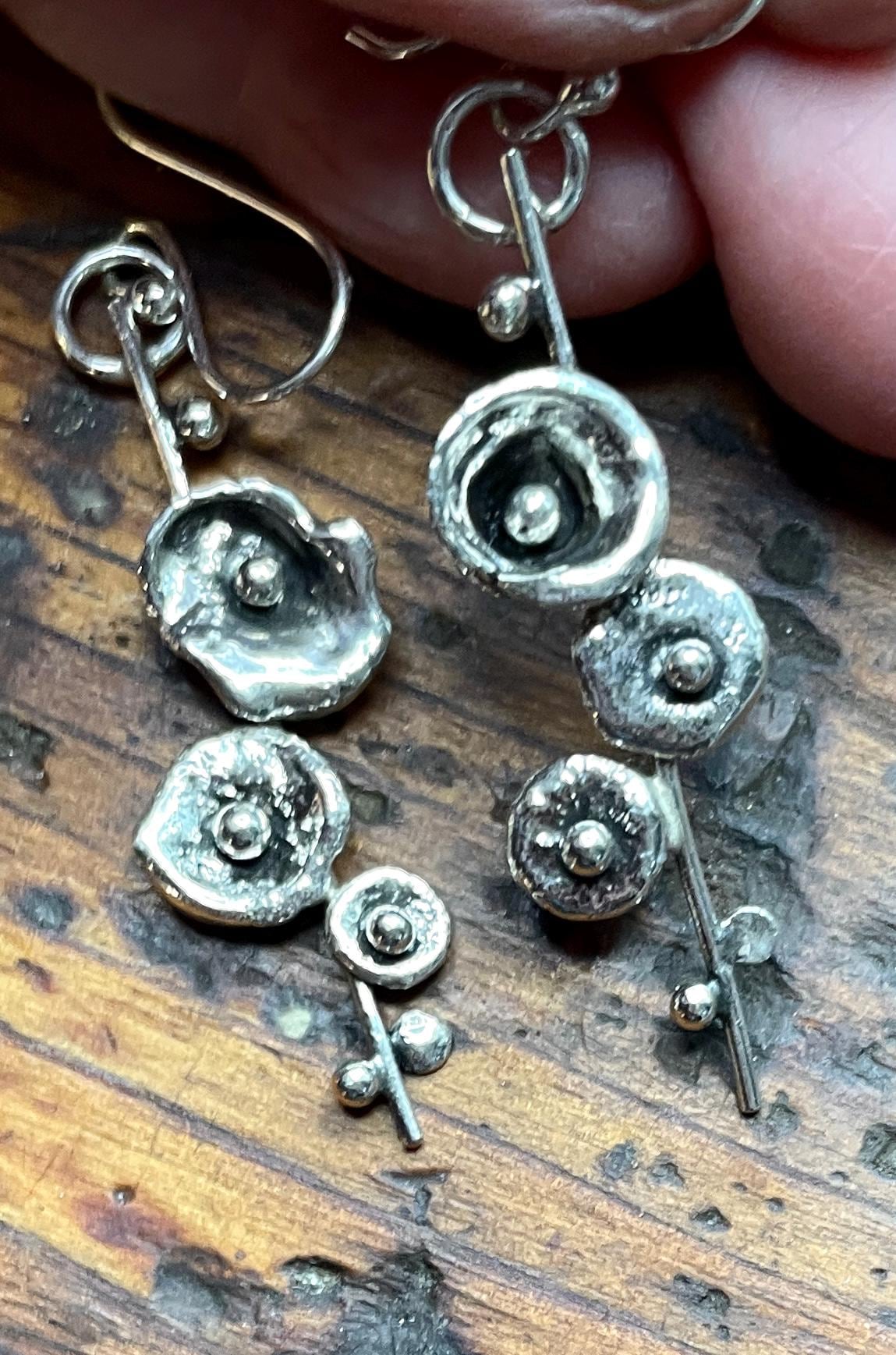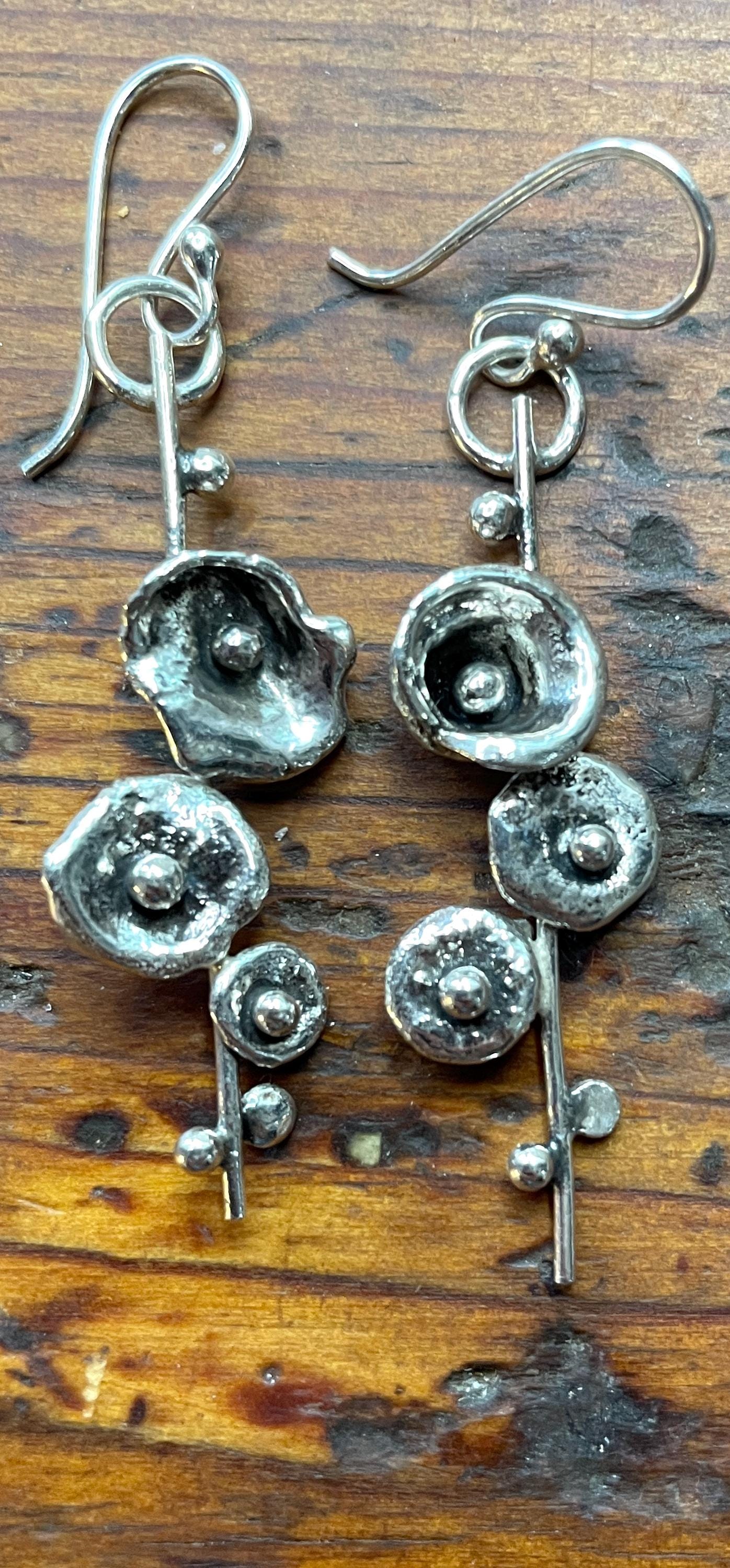 These sterling silver earrings resemble wild flowers or Hollyhocks. They sparkle as they move.