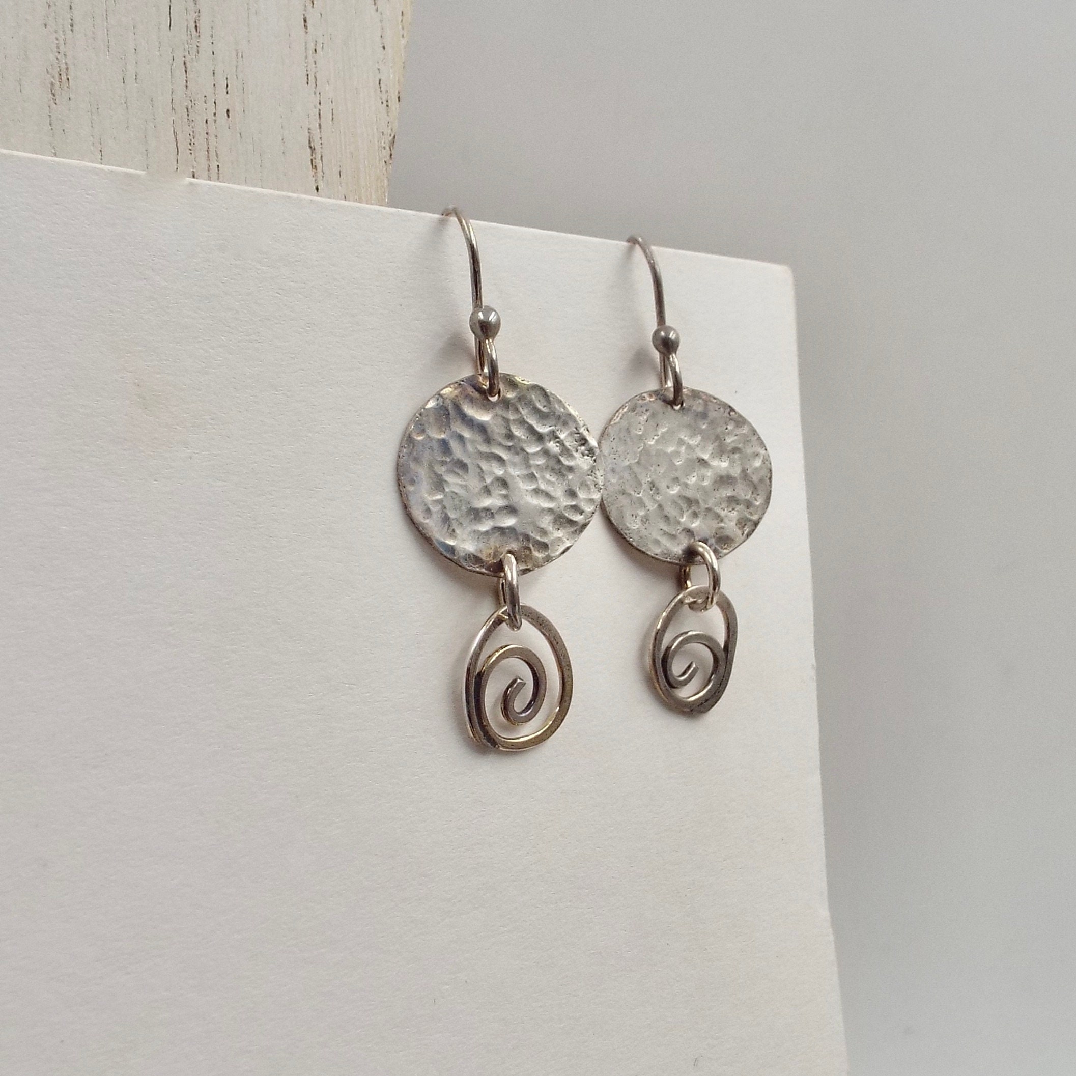 I made these earrings entirely by hand. They measure approximately 44 mm ( 1 5/8") from the top of the handmade sterling ear wires.
